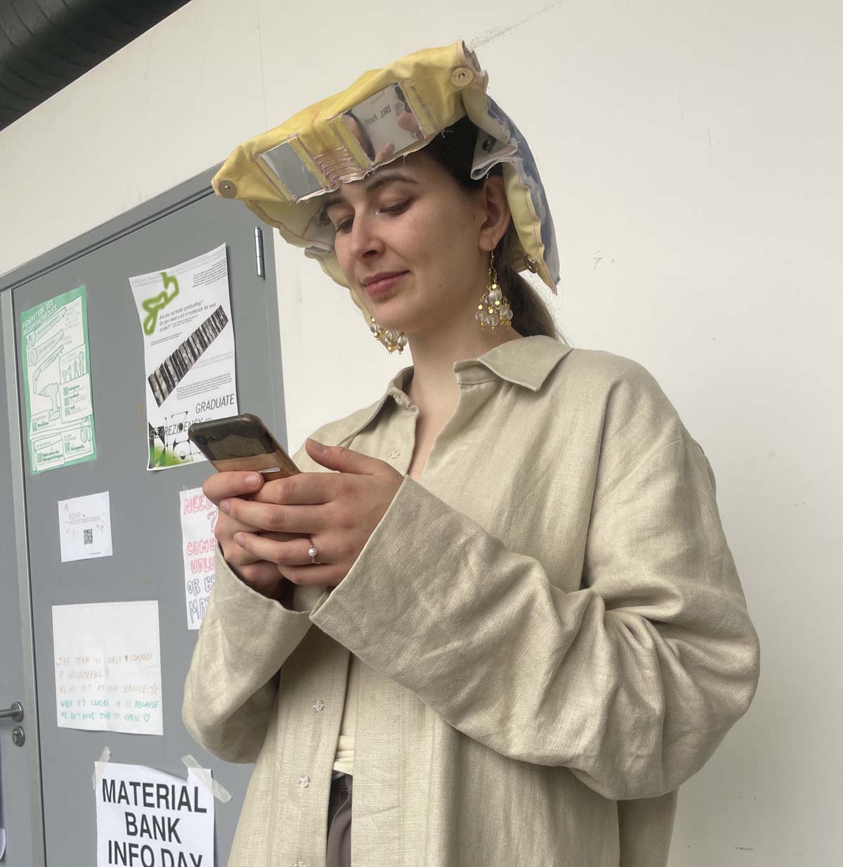 The irl hat, developed with Yukyung Kim, reflects on the phone’s role as an isolating device. While it promises connection, it often shuts people off from those around them. Unlike a book—whose cover reveals what someone is engaging with—phone use tends to conceal the activity and disconnect the user from their surroundings. The irl hat attempts to counter this.
