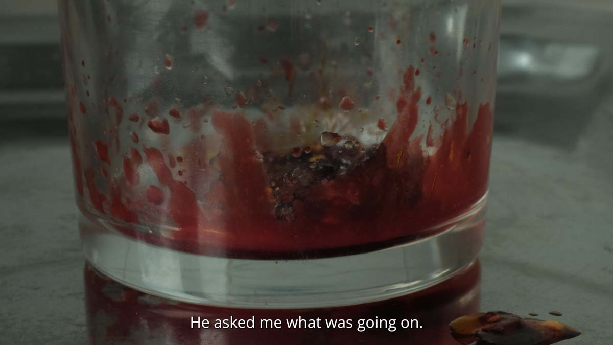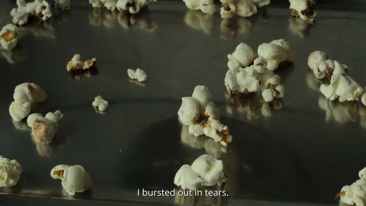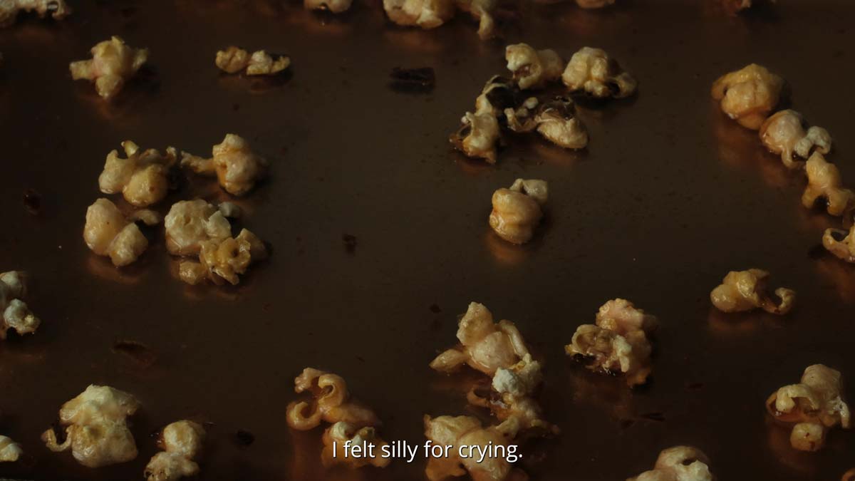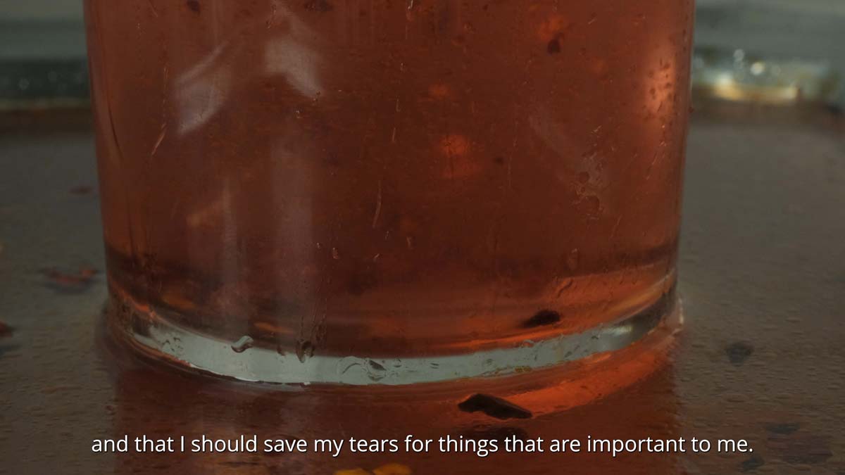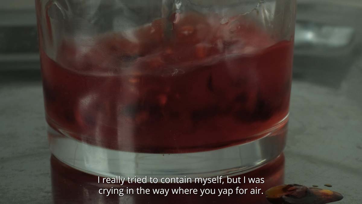 Tell me, how does anger taste? is part of edible installation I Was Promised Sweets. The featured video is paired with a slowly melting iceblock. Visitors are encouraged to touch and taste, creating a multisensory experience in which food acts as a conduit for memory and the body.